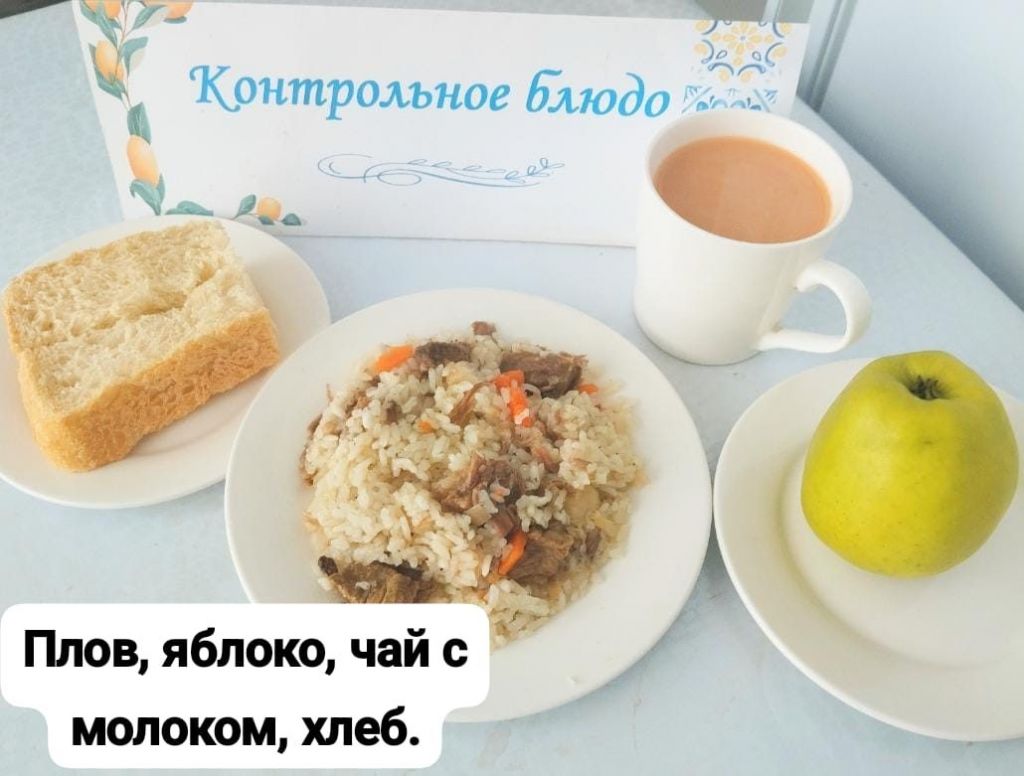 Бүгінгі мәзірі: палау, сүт қосылған шай, алма, нан.