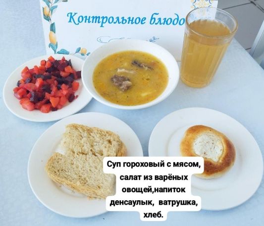 Бүгінгі мәзірі: пісірілген көкөніс салаты, бұршақ сорпасы, ірімшік торт, денсаулық сусын, нан.
