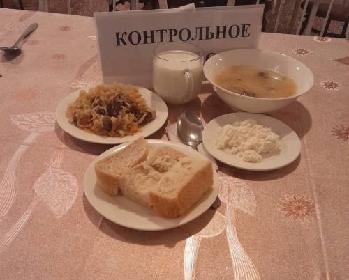 Бүгін мәзірде: арпа сорпасы, ет қосылған қырыққабат, сүзбе, сүт, нан.