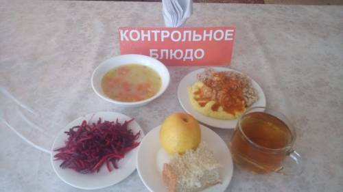 Күнделікті бақылау тағамдары шығарылады: сорпа, туралған ет, кәртоп, інжу арпа,  сок, витаминді салат, алма, нан.