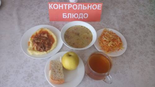 Күнделікті бақылау тағамдары шығарылады: сорпа, туралған етт, кәртоп, бал, ірімшәк, нан.