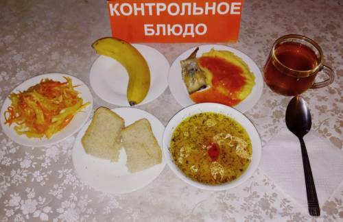 Күнделікті бақылау тағамдары шығарылады: сорпа, картоп езбесі, қырыққабат салаты, сарықисық, тәті су, нан.