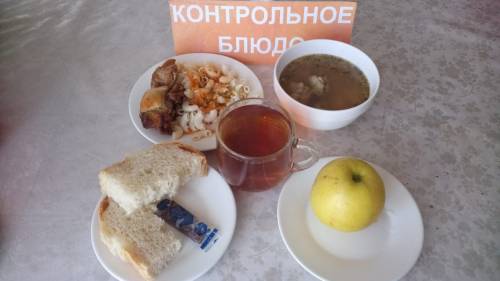 Күнделікті бақылау тағамдары шығарылады: сорпа, тауқтын ет, макароны бал,  алма, шай, нан.