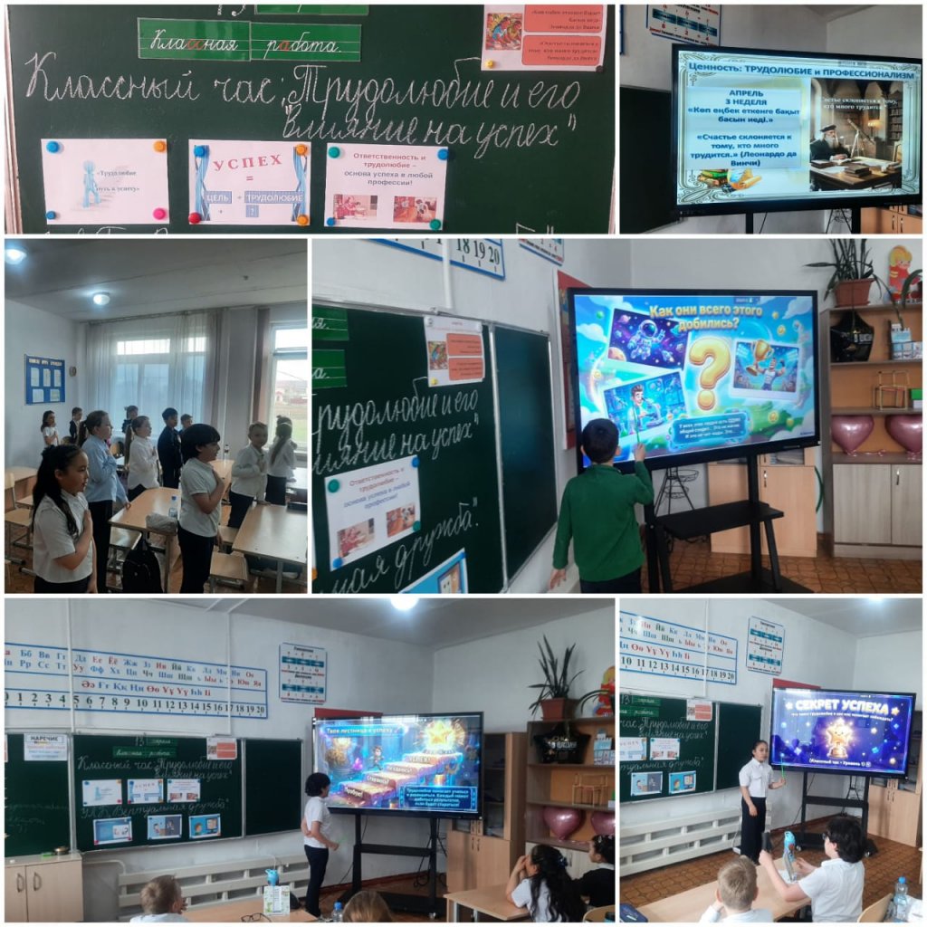 Сабақ барысында оқушылар еңбектің адам өміріндегі маңызын талқылап, өз ойларымен бөлісті. Олар табысқа жету еңбекқорлық, табандылық және жауапкершілік арқылы жүзеге асатыны...