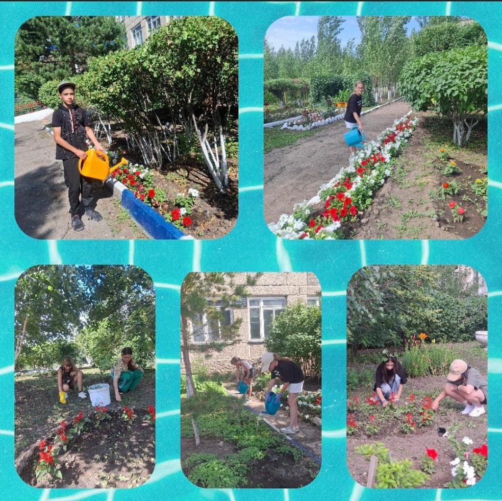 11 шілдеде экологиялық жасақ мектеп аумағын абаттандыру жұмыстарын жалғастырды.