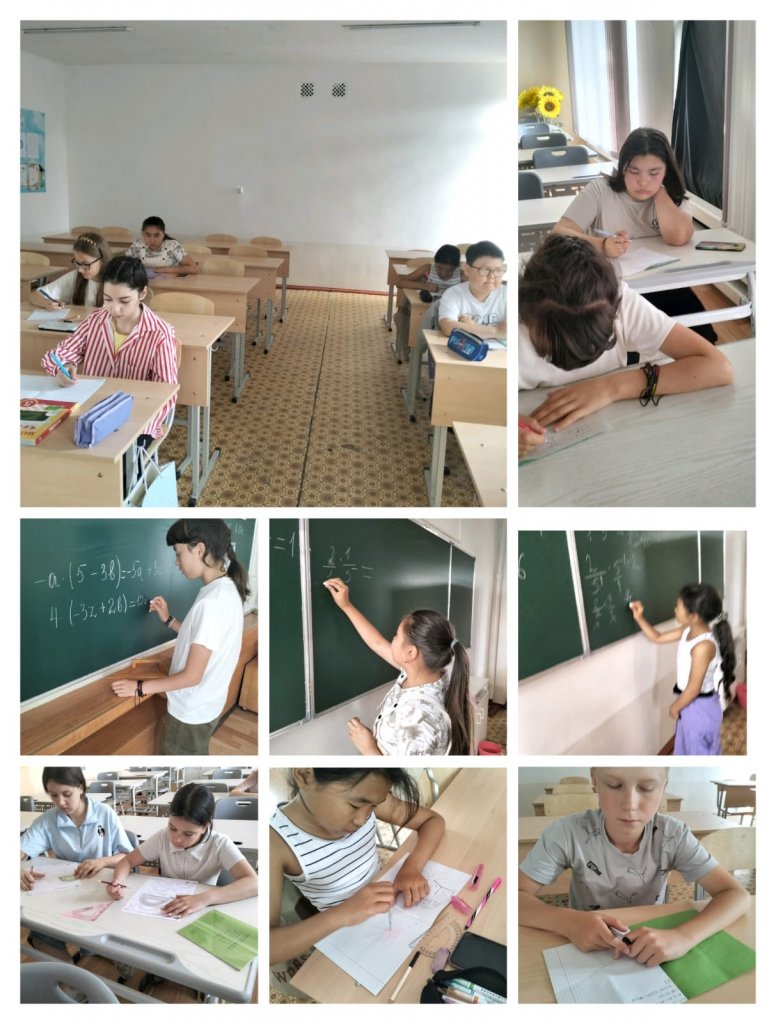 Жазғы математика мектебі аясында 5–6-сынып оқушылары математика пәнімен белсенді түрде айналысып, бұрын меңгерілген материалды бекіте түсуде.