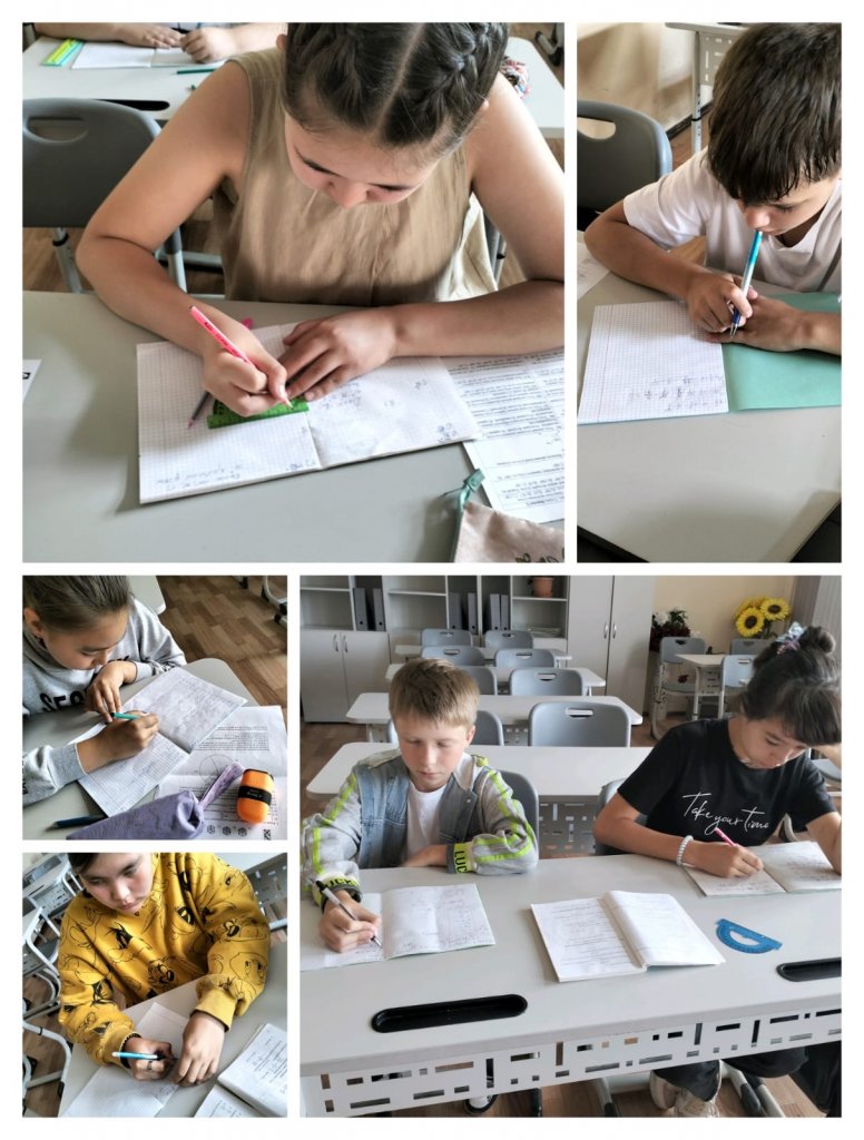 Жазғы математика мектебі аясында 5–6 сынып оқушылары белсенді түрде математикамен айналысып, бұрын меңгерілген материалды қайталап, бекітіп жатыр.