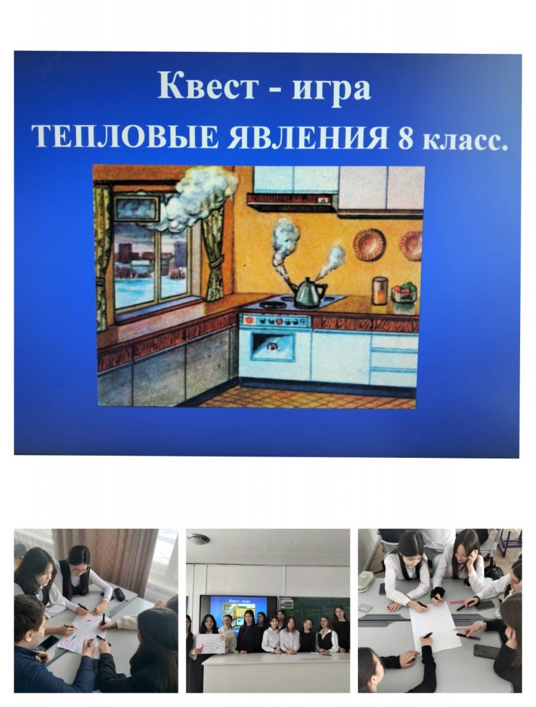 Бүгін МИФ апталығы (математика, информатика, физика) аясында «Жылу құбылыстары» тақырыбында физика пәнінен жарқын сыныптан тыс квест-ойын өтті.
