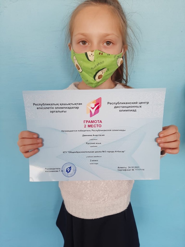 2021 жылдың 25 қазанында 2 «Е» сынып оқушылары орыс тілі, математика, қазақ тілі пәндері бойынша Республикалық қашықтық олимпиадасына белсенді қатысты. 1 және 2 орынға мақтау қағаздарымен марапатталды.