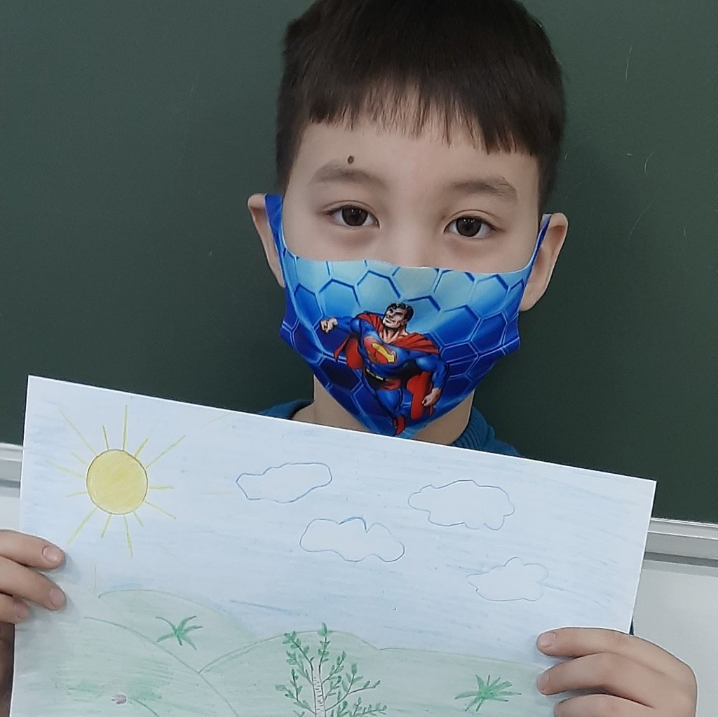 Сынып сағатының соңында балалар "Таза табиғат" атты суреттер салды.