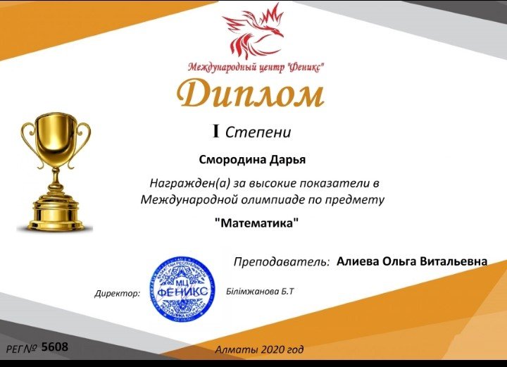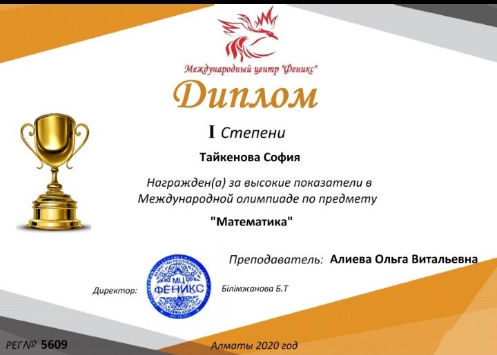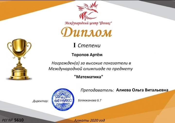 Математика пәнінен халықаралық қашықтық пәндік олимпиада жеңімпазы