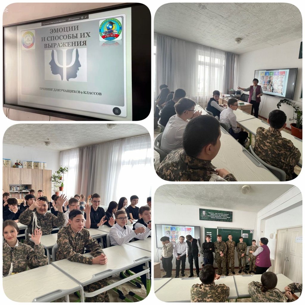 Балалар мен ата-аналарға арналған тренингтер бағдарламасының 1 модулін өткізу шеңберінде 29 қаңтарда мектепте 9-сынып оқушыларына арналған «Эмоциялар және оларды білдіру тәсілдері» тақырыбында жасөспірімдердің эмоциялық интеллектісі мен коммуникативтік...