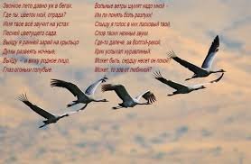 "Журавли" өлеңін авар ақыны Расул Гамзатов жазды. Ол өзінің туған, авар, тілінде жазған. Орыс тіліне аударған Н. Гребнев. Кейінірек ол танымал ән болды. Ән соғыс...