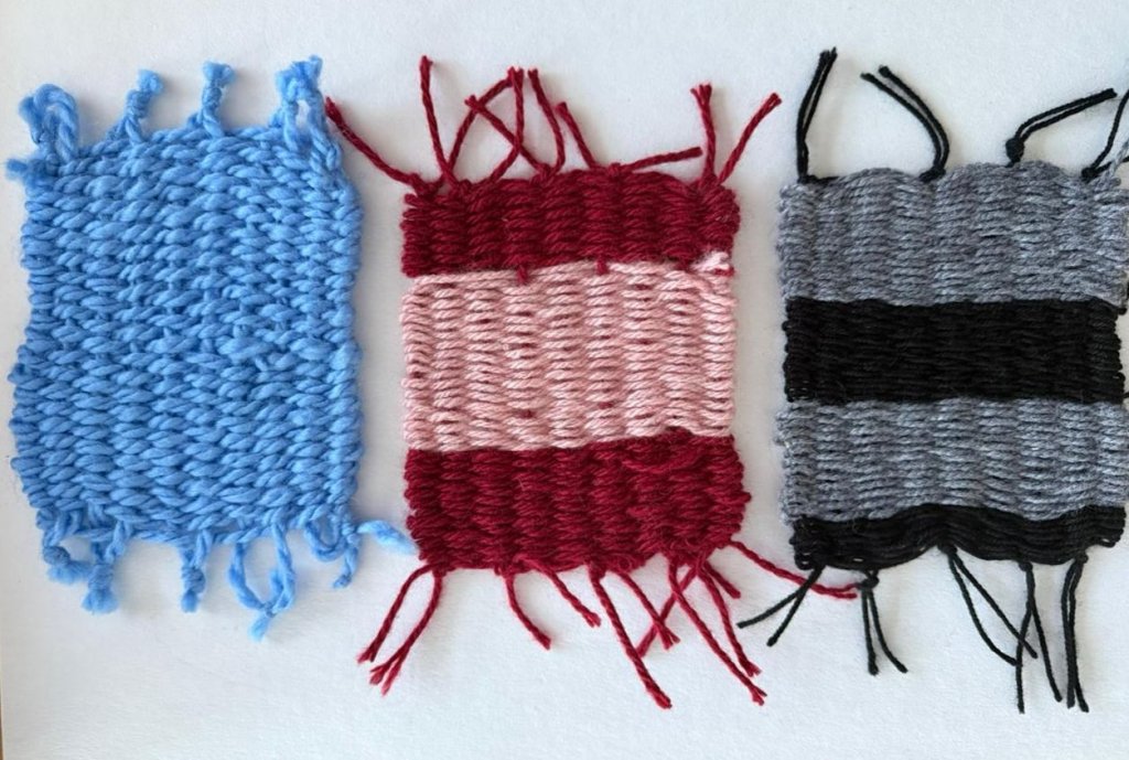 Оқушылар өздерінің шағын тоқыма полотноларын мақтанышпен ұсынып, материалмен жұмыс істеу және шығармашылық ойларын іске асыру қабілеттерін көрсетті.