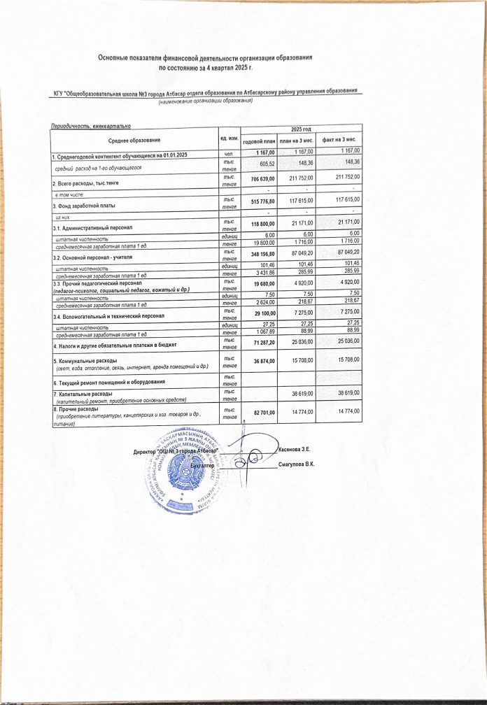 2025 жылғы 4 тоқсандағы жағдай бойынша білім беру ұйымының қаржылық қызметінің негізгі көрсеткіштері