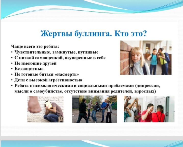 Қорқытуға, ең алдымен, қарсы тұра алмайтындар, физикалық тұрғыдан әлсіз немесе жалпы жүйеге сәйкес келмейтіндер ұшырайды. Кез-келген бала физикалық, интеллектуалдық қабілеттеріне немесе материалдық жағдайына қарамастан қорқытудың құрбаны бола алады. Психологиялық жарақат тек қорлауға қатысушылар ғана емес, оның куәгерлері де алады.Қорқыту мектеп ұжымындағы психологиялық атмосфераға теріс әсер етеді. Қорлау мен қорлау кейбір балаларда қорқыныш пен мазасыздықтың дамуына әкеледі, ал басқаларында қатыгездік пен агрессияның пайда болуына ықпал етеді. Сонымен қатар, балалардың бір бөлігі жәбірленуші болудан қорқып, қудалаушылардың қатарына кіреді, ал тағы бір бөлігі сыныптастарының қорланғанын көріп, үнемі қысымға ұшырауға мәжбүр. Бірақ бәрінен бұрын, әрине, қажетті психологиялық-педагогикалық көмекке мұқтаж қорқыту құрбандары зардап шегеді . Мектеп ұжымы үшін ең қолайлы-қорқытудың уақтылы алдын алу, оның алдын алу.