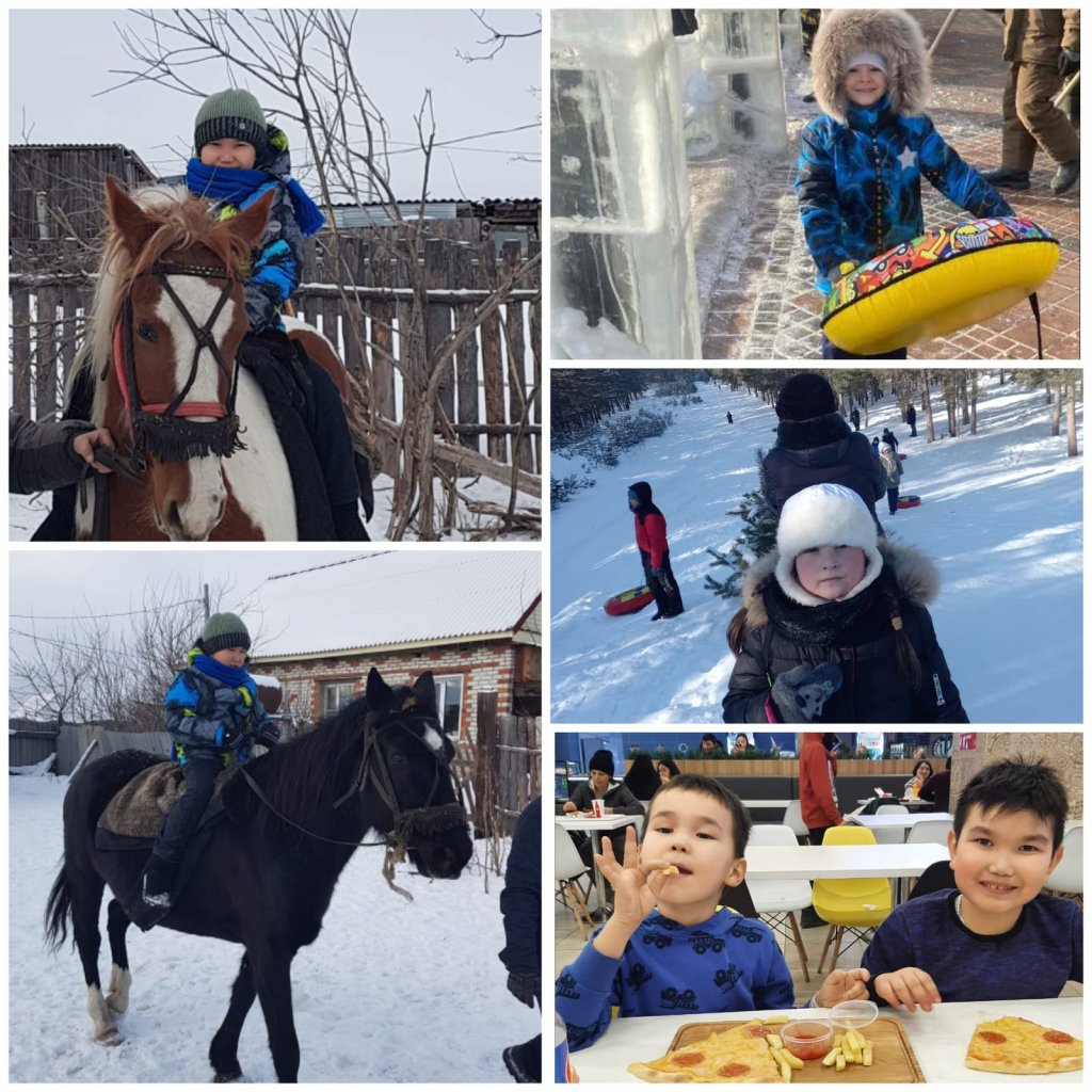 Кейбір оқушылар ата-аналарымен бірге қонаққа барып, қыс мезгілінде өте әдемі болатын облысымыздың демалыс аймақтарына барып, ашық ауада белсенді демалыс өткізді. Басқалары Отанымыздың астанасы-Астанаға барды. Біз кинотеатрларда, аттракциондарда болдық, сонымен қатар слайдтардан түтіктерге міндік.