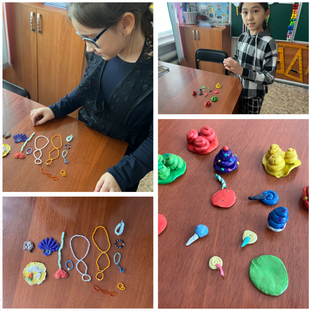 Олексенко Милана бисермен айналысса, Козеева Екатерина резеңкеден түрлі бұйымдар жасайды, Төлеген Алтын, Боранбай Қарақат және Кравчак Эмилия пластилиннен тамаша фигураларды мүсіндеді.