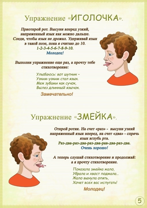 5. "Ине" - аузы ашық, ерні күлімсіреп созылып, тілін" инемен " сыртқа шығарып, тілден алыстаған саусаққа немесе қарындашқа созып, тілді алға қарай созыңыз. Ерін мен жақтың қозғалмайтындығына көз жеткізіңіз. .
