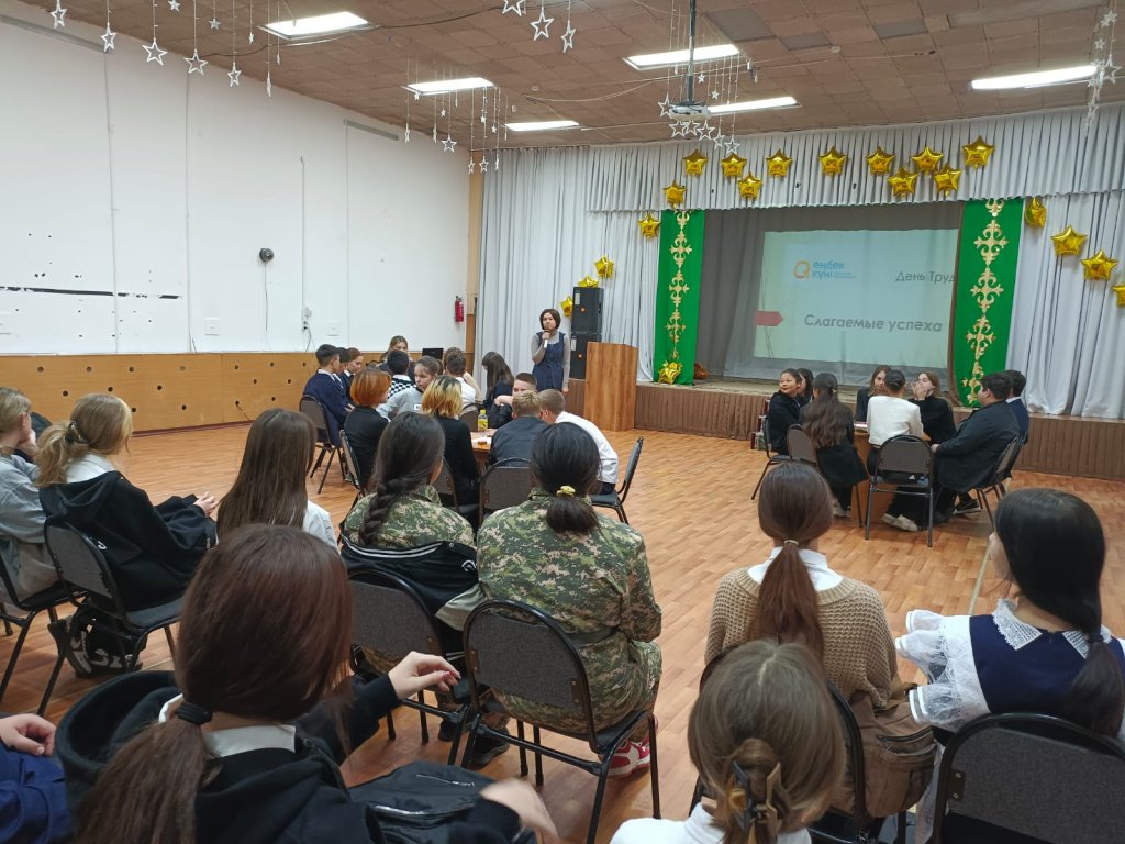 Бүгін мектебімізде Қазақстан Республикасындағы Еңбек күнін мерекелеу аясында 9-сынып оқушылары арасында «Табыс құраушылары» тақырыбында дөңгелек үстел өтті. Талқылау барысында табысқа жету формуласы құрылып, мамандық таңдау, сонымен қатар қаламыздағы заманауи табысты мамандықтар талқыланды.