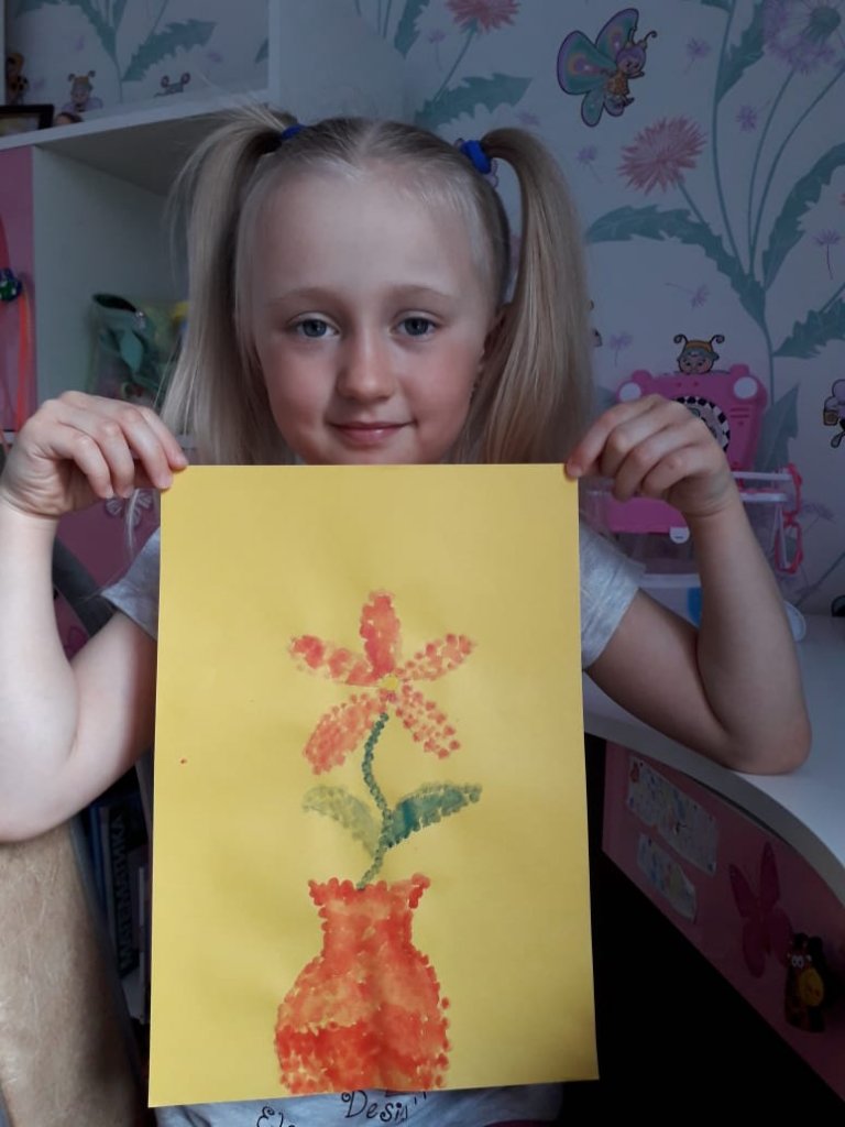 Мектеп алдындағы тәрбиешіні қашықтықтан оқыту шеңберінде сурет салудың дәстүрлі емес техникасы бойынша қосымша сабақтар өткізді. Оқудан бос уақытта балалар өздерін шығармашылыққа қуана арнайды.