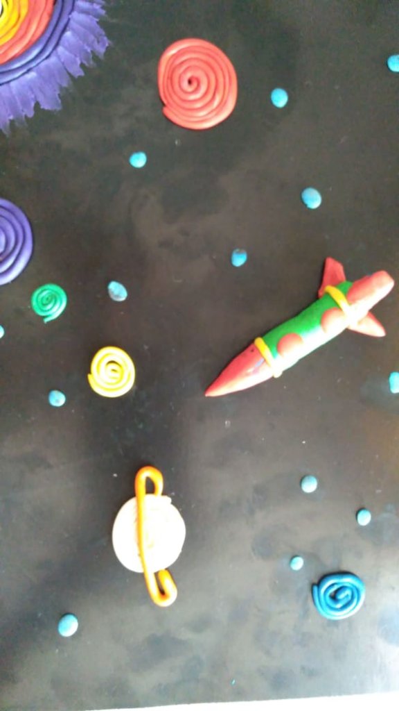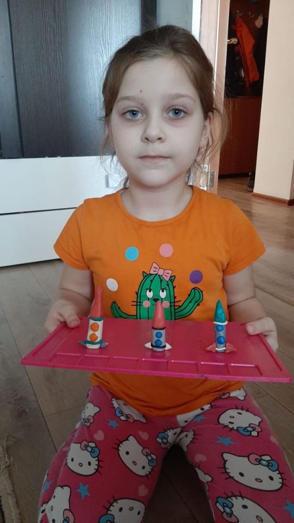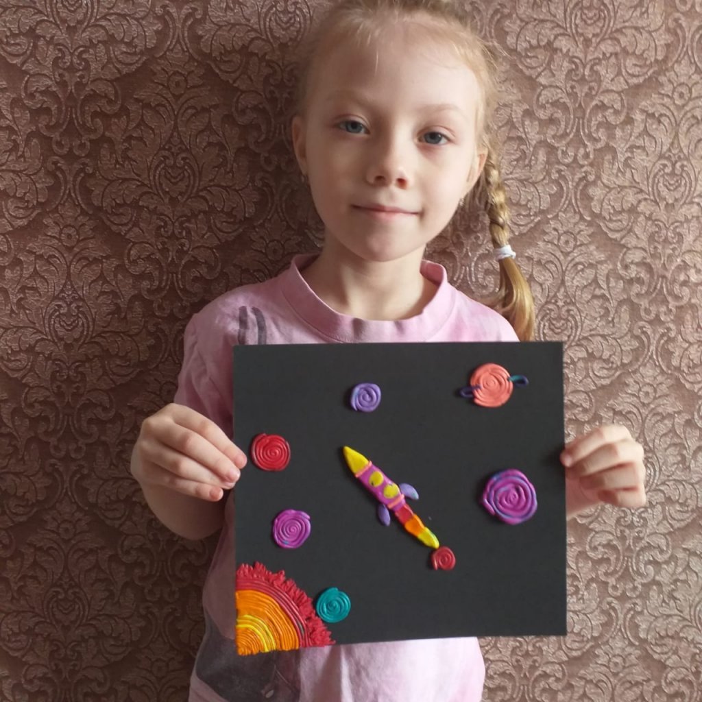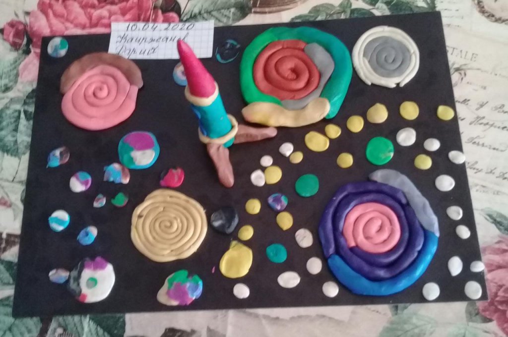 Мектеп алды сыныптарында мүсұндеу тақырыбы бойынша, «Аспанга кемелер ұшады» Ғарышкерлер күні қарсанында балалар өз жұмыстарын ұсынды.