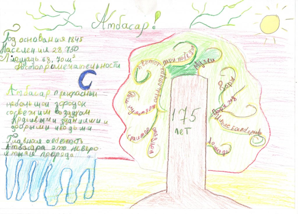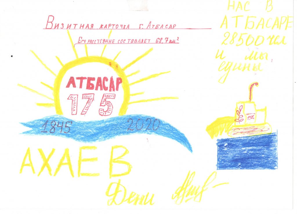 Атбасар қаласының құрылғанына 175 жыл толуына орай 7 сынып оқушылары біздің қаламыздың визит карточкасы-суреттерін дайындады. Балалар өз суреттерінде қала рәміздерін ғана емес, сонымен қатар біздің басты көрікті жерлерін де көрсетті.
