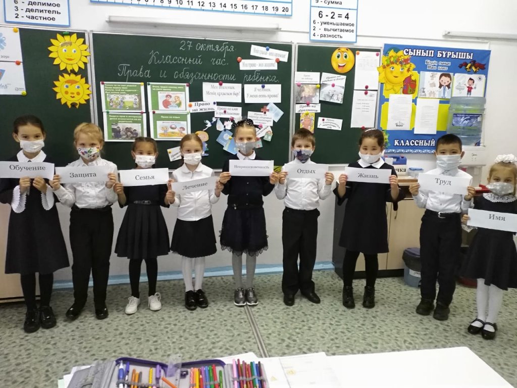 2020 жылдың 27 қазанында№3 ОМ 1-11 сынып оқушыларына "Бала құқығы – адам құқығы" атты дүниежүзілік бала күніне арналған "Баланың құқығы мен міндеттері" атты сынып сағаты өтті.