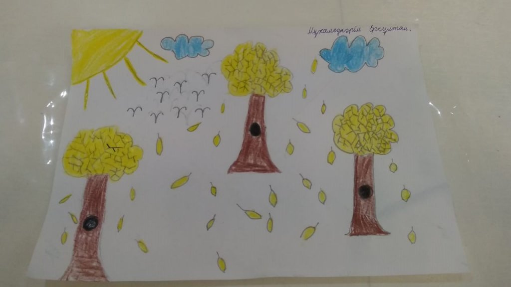 Балалар күз туралы мүлдем басқа суреттер салды. Өз суреттерінде олар өздерінің көңіл-күйлерін және жылдың осы әдемі уақытына деген көзқарасын көрсетті.