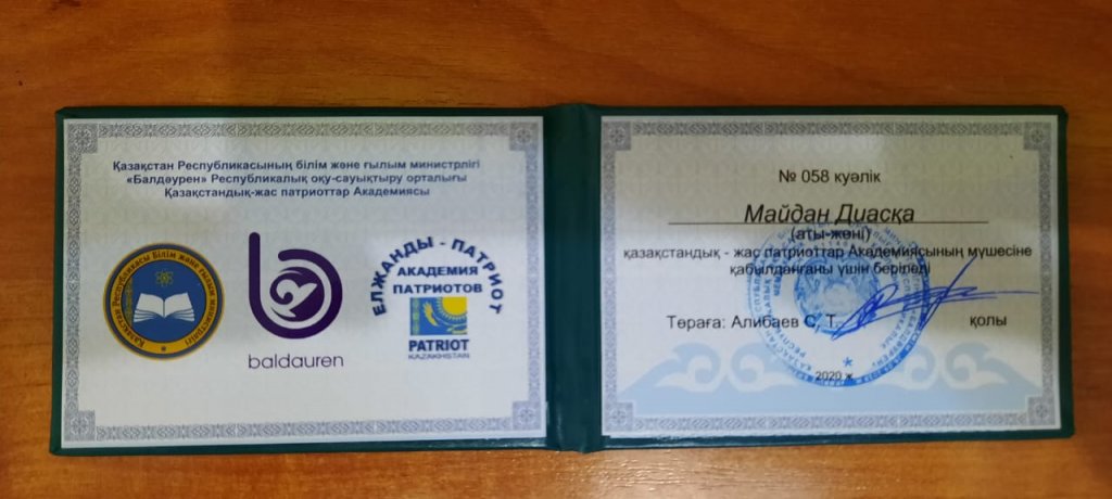 8-28 қараша аралығында Мен "Балдәурен" оқу-сауықтыру орталығында демалдым, демалыстан жақсы естеліктерім қалды. Демалыс кезінде Мен үшін маңызды бір оқиға болды – мен жас патриоттар академиясының мүшесі болдым.